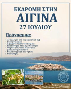 Η Αίγινα με τον Άγιο Νεκτάριο είναι πάντα ένας ελκυστικός προορισμός. Με το σκεπτικό αυτό ο Σύλλογος Απανταχού Περιβολιωτών “ΖΩΟΔΟΧΟΣ ΠΗΓΗ” οργάνωσε την Κυριακή 27 Ιουλίου 2025 ημερήσια εκδρομή στην Αίγινα. Βασικός σκοπός προσκύνημα στην Ιερά Μονή του Αγίου Νεκταρίου, εκεί όπου έζησε και εκοιμήθη ο Άγιος και Θαυματουργός Προστάτης χιλιάδων πιστών. Ακολούθησε φαγητό και μπάνιο στην Αγία Μαρίνα. Η εκδρομή έκλεισε με μία όμορφη βόλτα στη Χώρα.